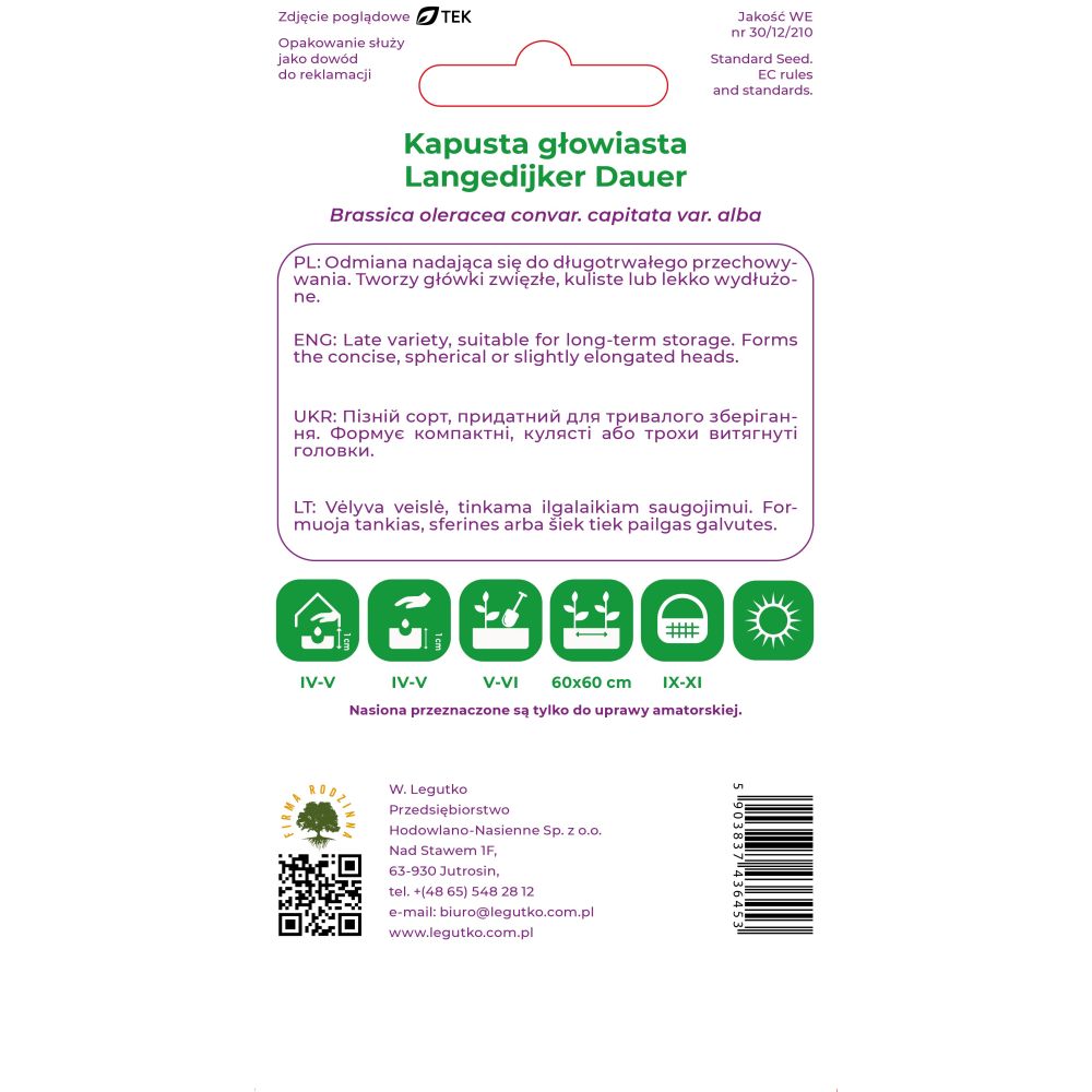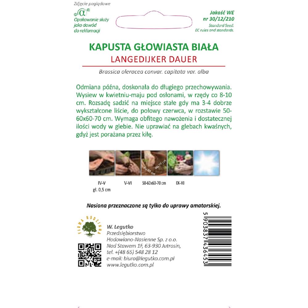 Kapusta głowiasta biała - Brassica oleracea convar. capitata var. alba - Langedijker Dauer - 2.00g