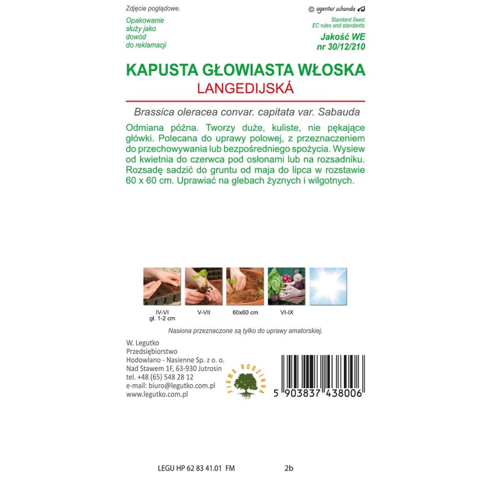 Kapusta włoska - Brassica oleracea var. sabauda - Langedijska - 2.00g