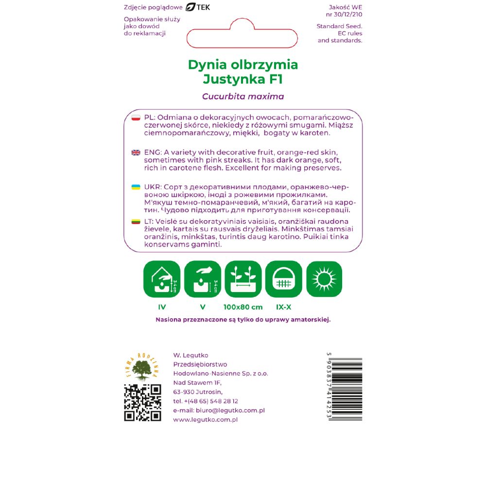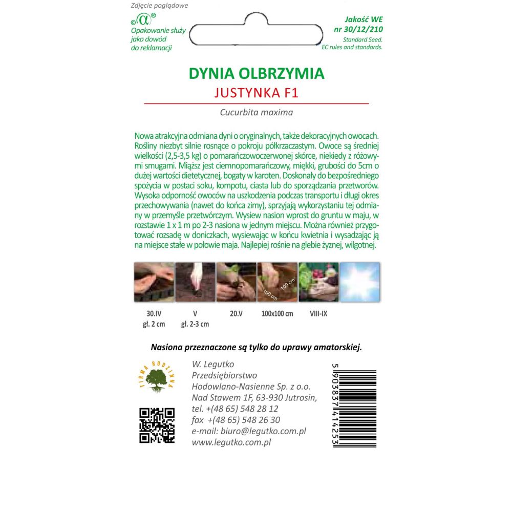 Dynia olbrzymia - Cucurbita maxima - Justynka F1 - pomarańczowy - 3.00+1.00g