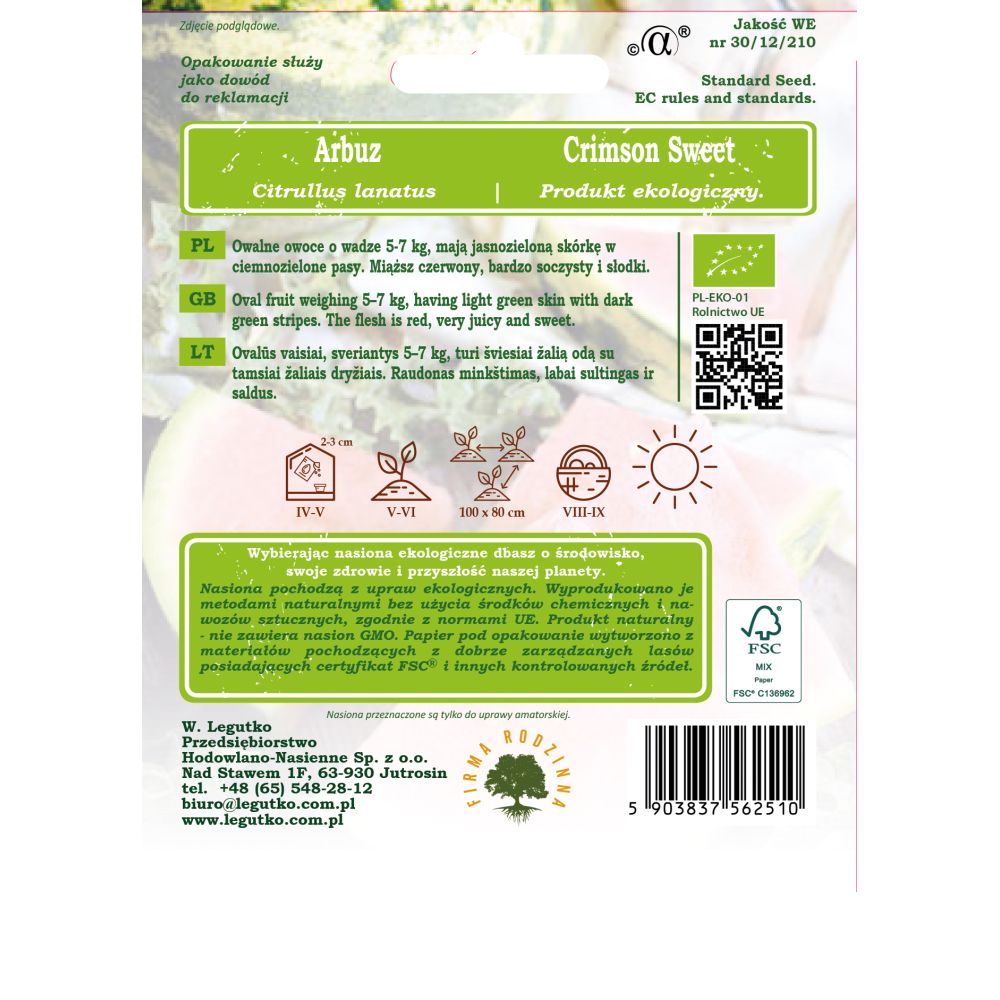 BIO - Arbuz - Citrullus lanatus - Crimson Sweet - czerwony - 0.50g