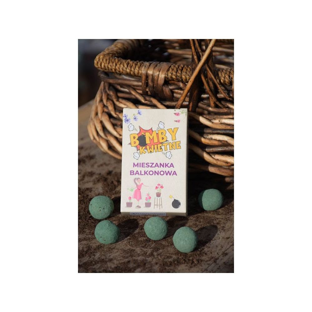 Co to takiego? Jest to specjalna mieszanka nasion jednorocznych roślin ozdobnych wymieszanych z podłożem i uformowanych w małe kule. Po wysadzeniu kul otrzymasz kolorową, różnorodną, przyjazną owadom kompozycję kwietną. Bomby idealnie nadają się do pojemników, pustych miejsc w ogrodzie lub przestrzeni miejskich. Są bardzo łatwe w użyciu, wymagają podlewania tylko w początkowej fazie wzrostu, a wybrane gatunki są odporne na niesprzyjające warunki atmosferyczne.