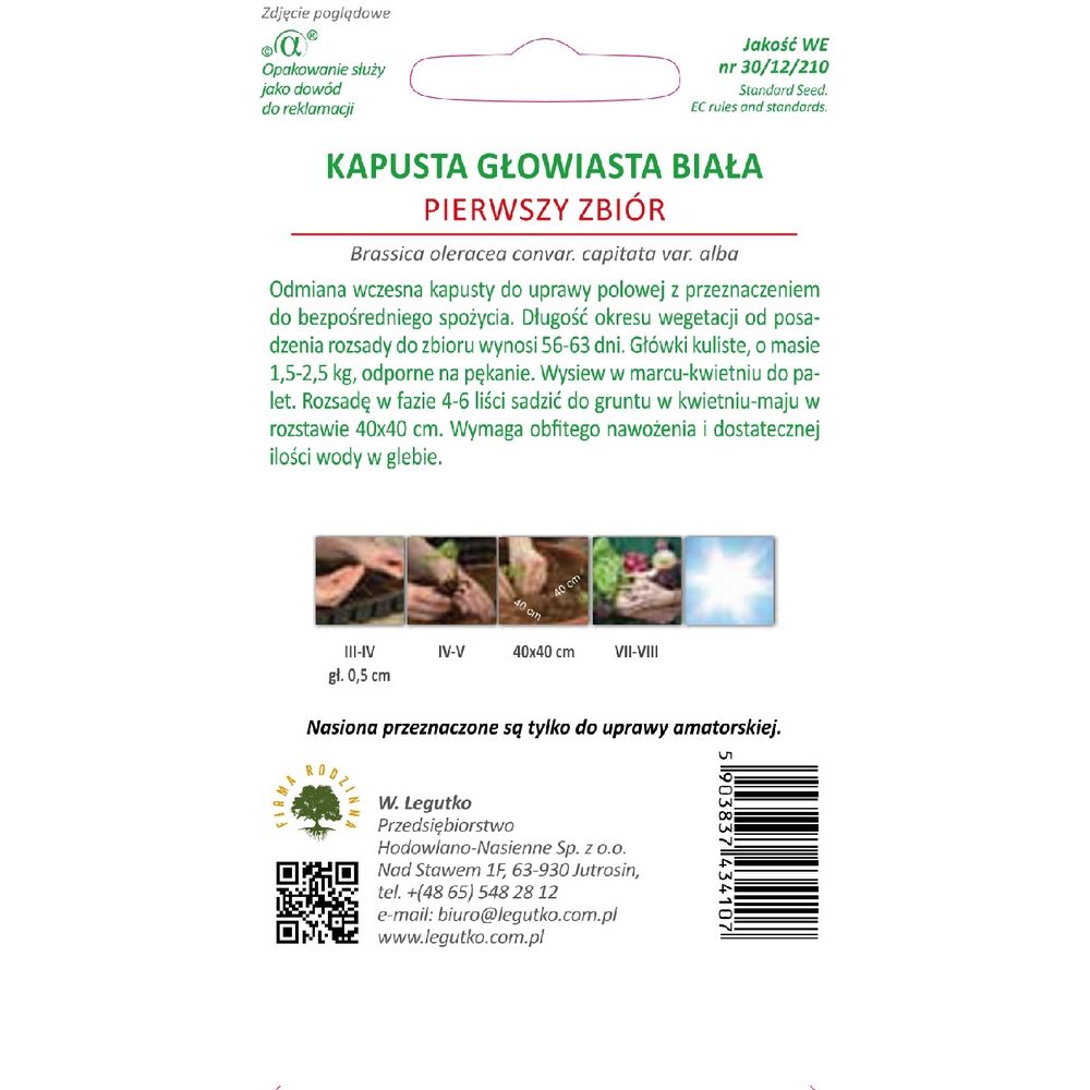 Kapusta głowiasta biała - Brassica oleracea convar. capitata var. alba - Pierwszy Zbiór - 2.00g