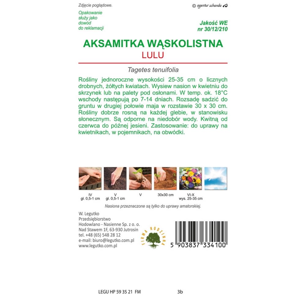 Aksamitka wąskolistna - Tagetes tenuifolia - Lulu - żółty - 0.30g