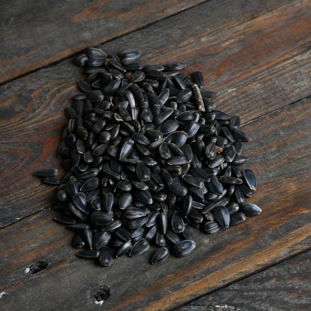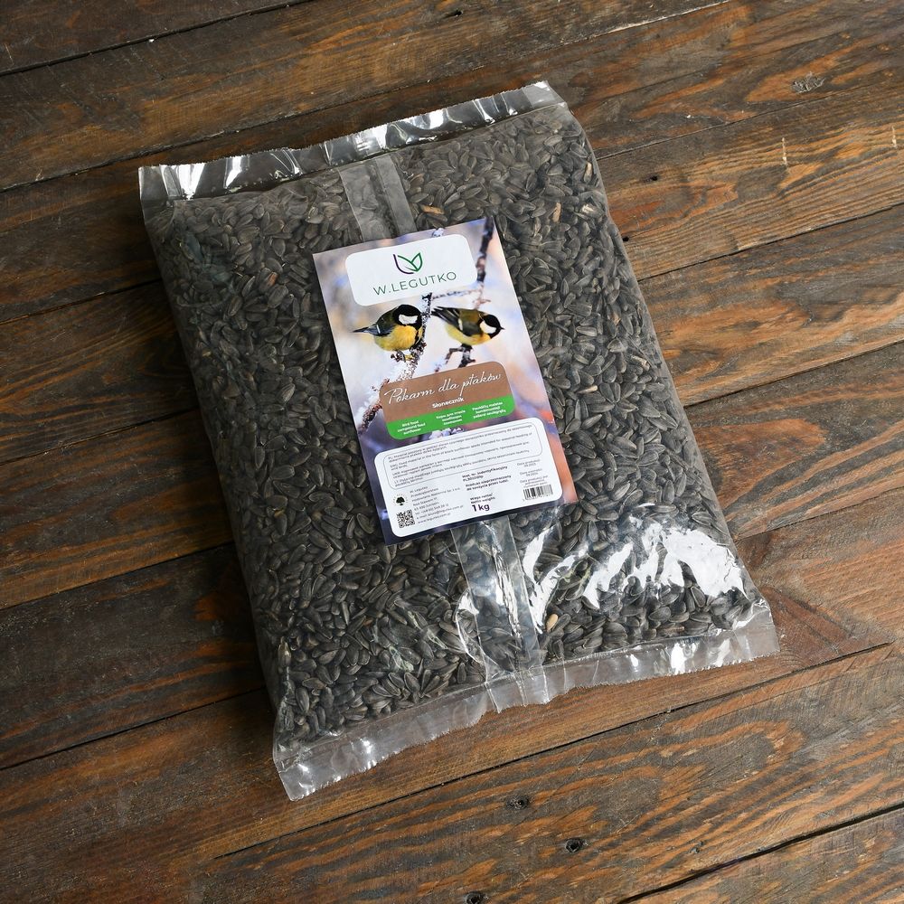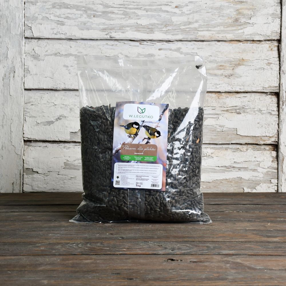 Materiał paszowy w postaci ziaren czarnego słonecznika przeznaczony do sezonowego dokarmiania ptaków dziko rosnących.