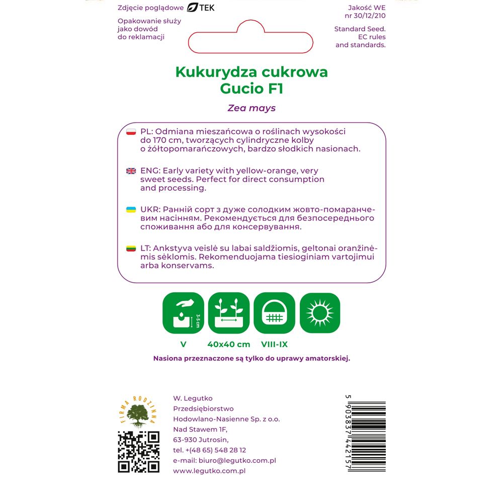 Kukurydza cukrowa - Zea mays convar. saccharata - Gucio F1 - 10.00g