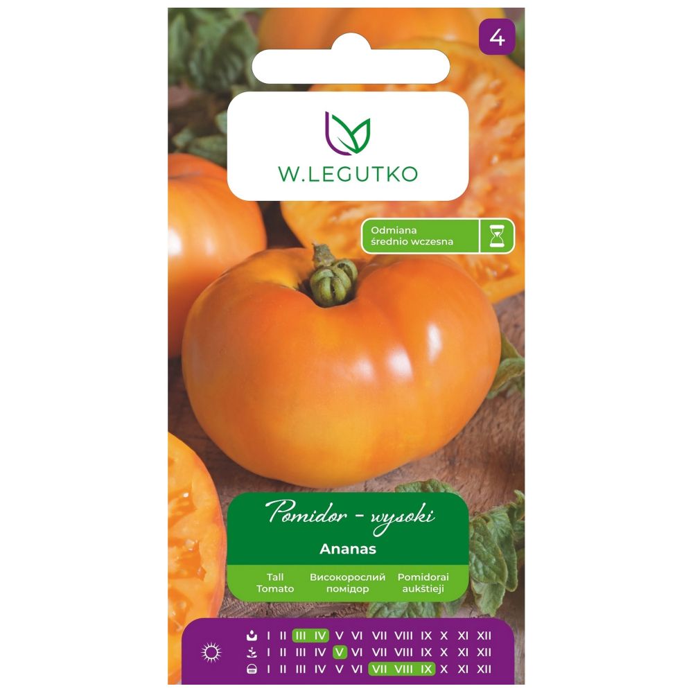 Pomidor gruntowy tyczny Ananas to odmiana o kulistospłaszczonych, żółto-pomarańczowych, dużych owocach i mięsistym słodko-owocowym miąższu.