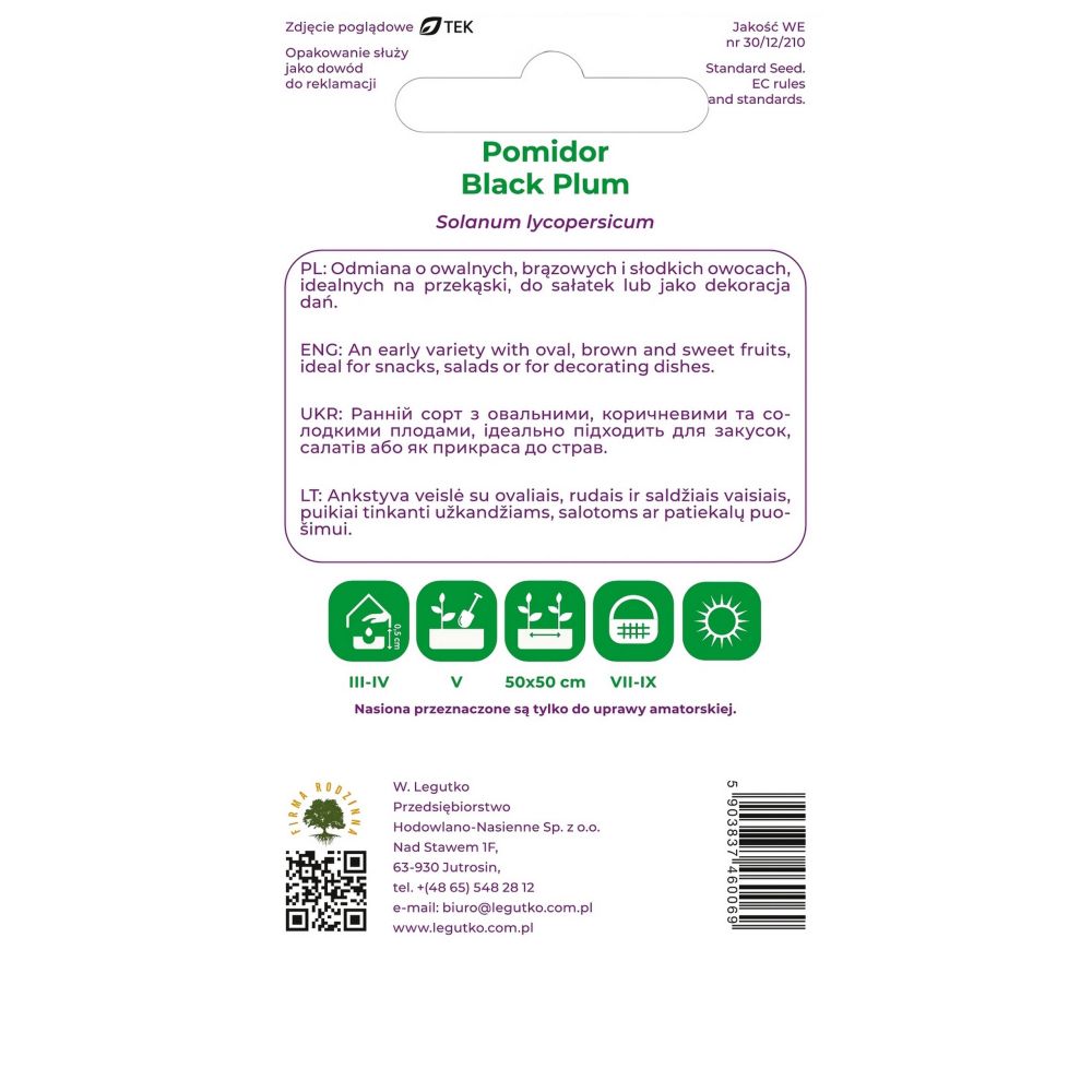 Pomidor gruntowy wysoki Black Plum - Solanum lycopersicum - brązowe - opakowanie zawiera 0,2g nasion