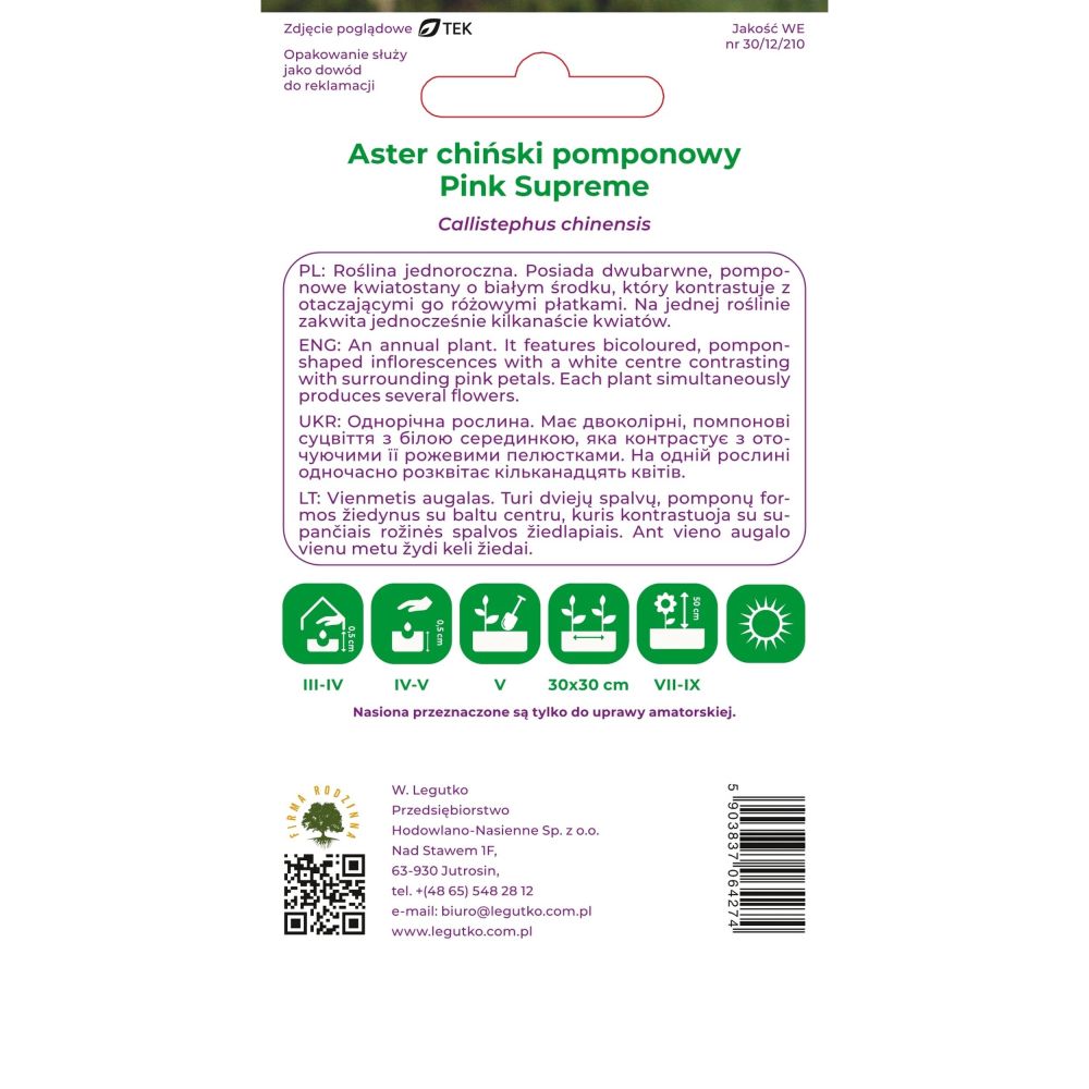 Aster chiński pomponowy Pink Supreme różowy Callistephus chinensis 1g
