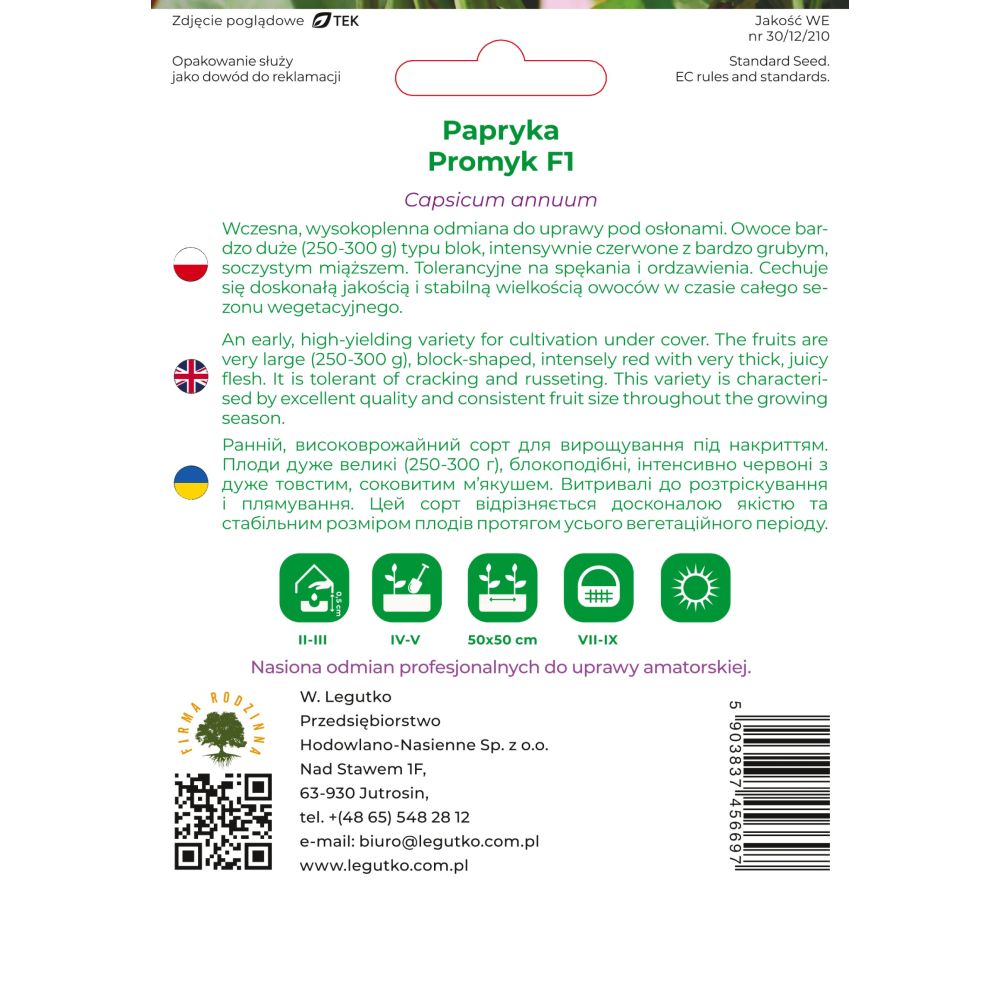 Papryka Promyk F1 to doskonała odmiana wczesna, która cechuje się wysoką plennością i znakomitą jakością owoców. Jest idealna do uprawy pod osłonami, gwarantując obfite i smaczne plony przez cały sezon.