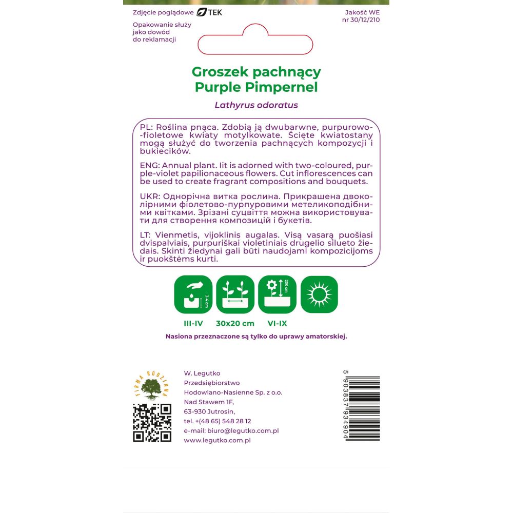 Roślina pnąca. Zdobią ją dwubarwne, purpurowo-fioletowe kwiaty motylkowate. Ścięte kwiatostany mogą służyć do tworzenia pachnących kompozycji i bukiecików.
