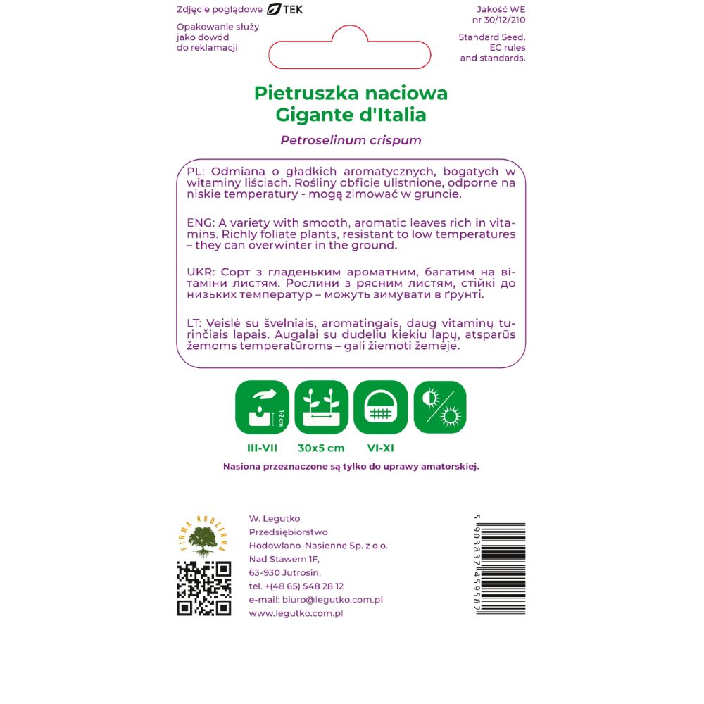 Pietruszka - Petroselinum crispum - Gigante d'Italia - 2.00g