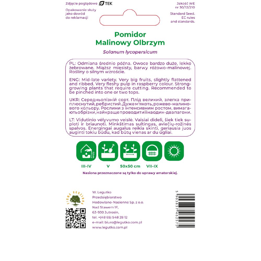 Pomidor gruntowy wysoki Malinowy Olbrzym - Solanum lycopersicum - różowy - opakowanie zawiera 1g nasion