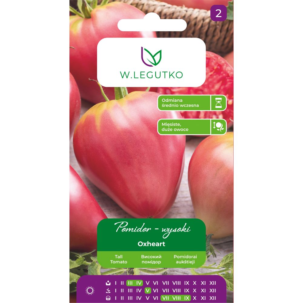Pomidor gruntowy wysoki Oxheart Bawole Serce - Solanum lycopersicum - malinowy - opakowanie zawiera 0,2g nasion