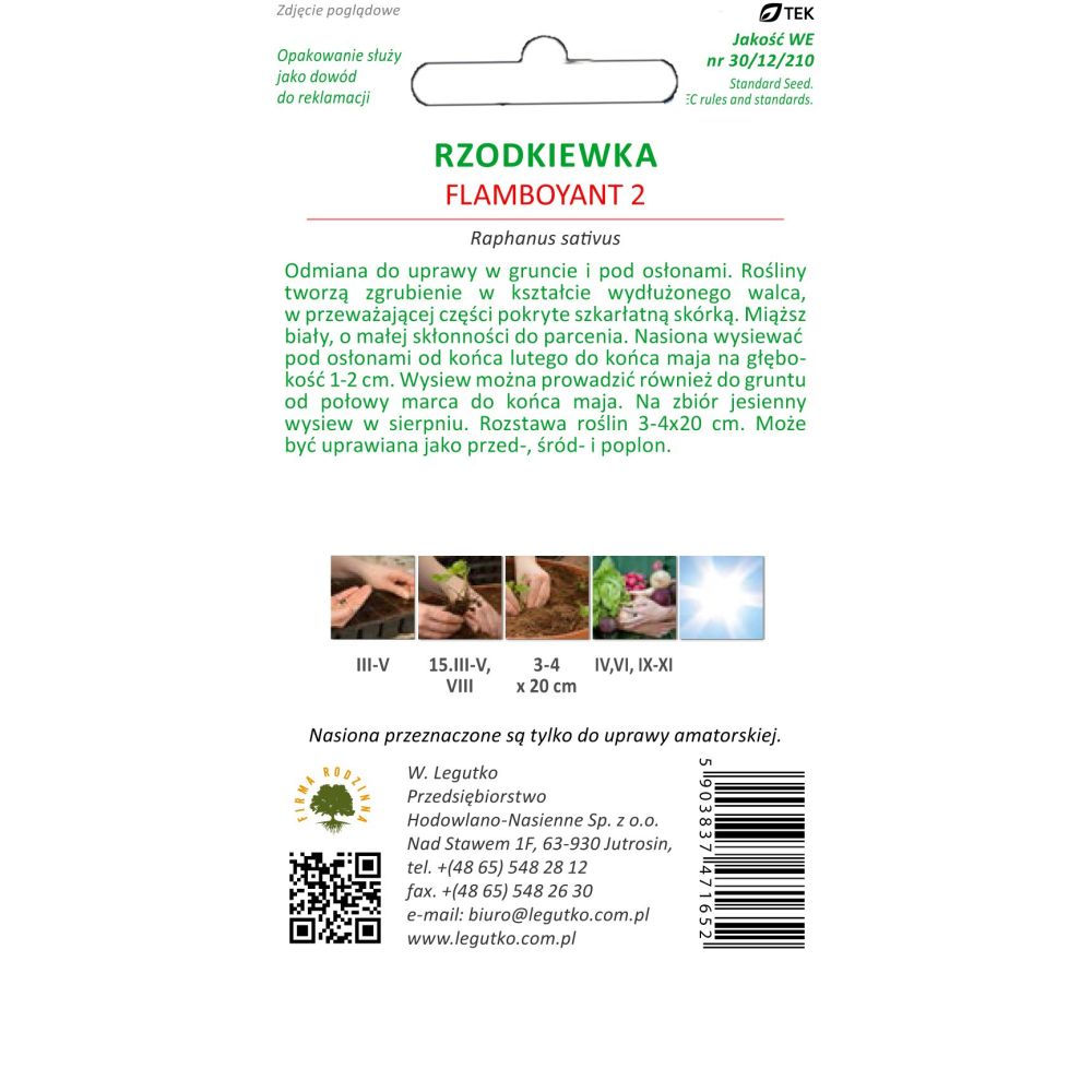 Odmiana do uprawy w gruncie i pod osłonami. Rośliny tworzą zgrubienie w kształcie wydłużonego walca, w przeważającej części pokryte szkarłatną skórką. Miąższ biały o małej skłonności do parcenia. Nasion wysiewać pod osłonami od końca lutego do końca maja na głębokość 1-2 cm. Na sprzęt jesienny wysiew w sierpniu. Rozstawa roślin 5-10 x 20 cm. Może być uprawiana jako przed-, śród- i poplon.