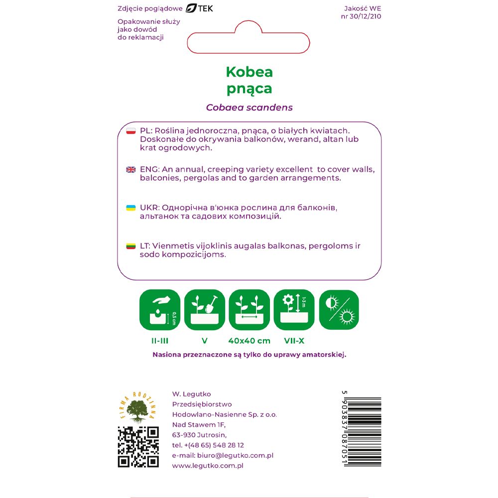 Kobea pnąca - Cobaea scandens - białe - 6nas.