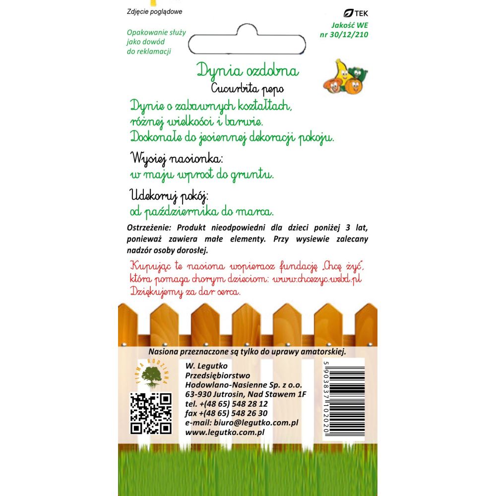 Dynie o zabawnych kształtach, rożnej wielkości i barwie. Doskonałe do jesiennej dekoracji pokroju. Wysiewaj nasionka: w maju w prost do gruntu. Udekoruj pokój: od października do marca. Siejąc nasiona, twoje dziecko poprzez zabawę uczy się podstaw ogrodnictwa oraz ekologii.