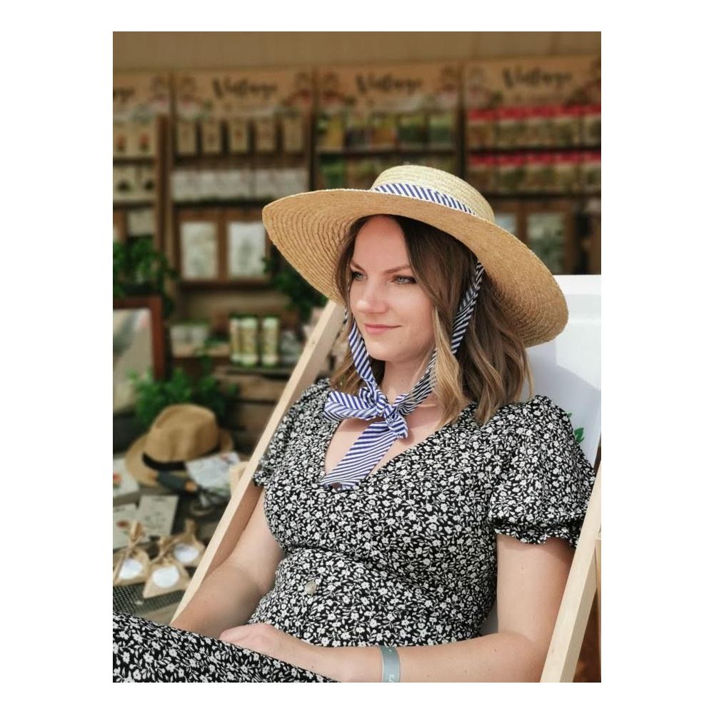 Elegancki kapelusz damski zdobiony dekoracyjną prążkowaną taśmą idealnie sprawdzi się podczas upalnych dni. Wewnątrz posiada specjalne tasiemki do regulacji rozmiaru. Ten szykowny kapelusz świetnie komponuje się z wieloma letnimi kreacjami. Tasiemkę do wiązania można całkowicie wyjąć.