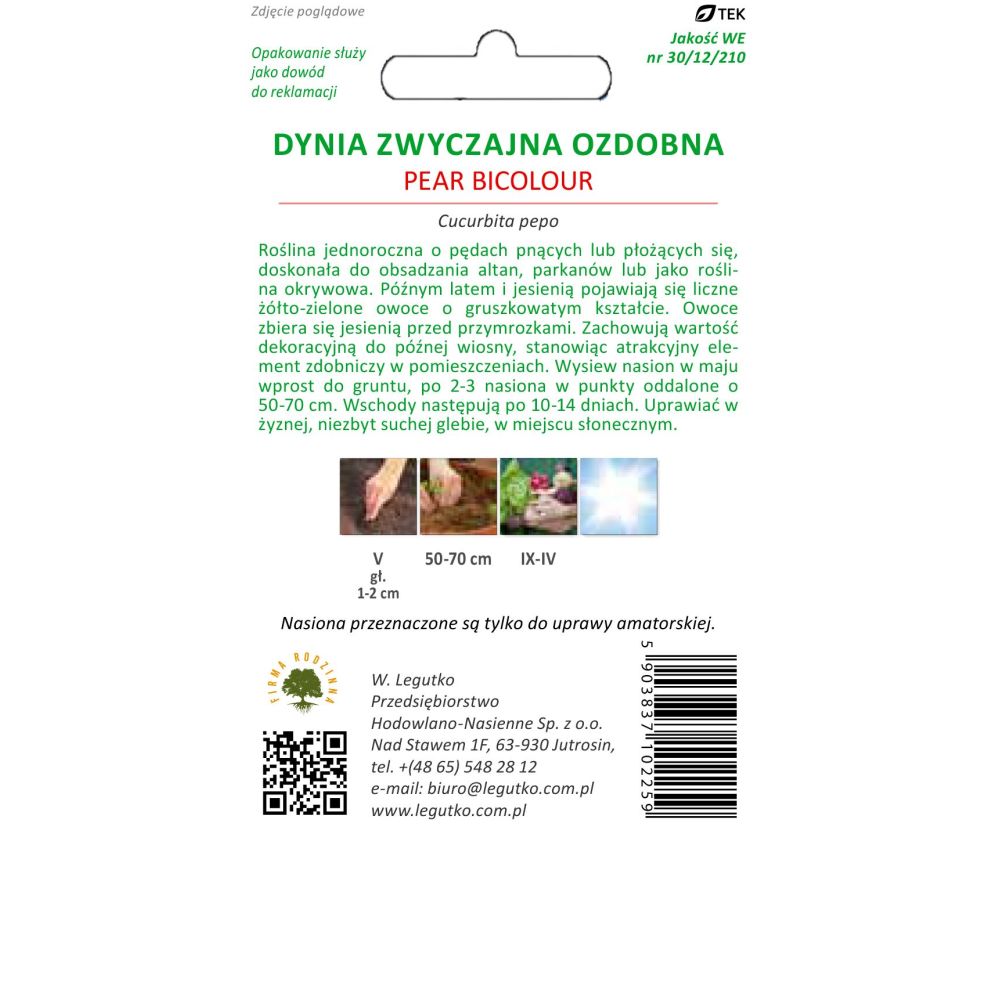 Dynia zwyczajna ozdobna - Cucurbita pepo - Pear Bicolour - pomarańczowe - 1,00G