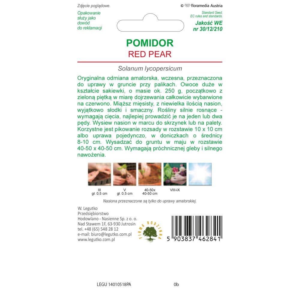 Pomidor gruntowy wysoki Red Pear - Solanum lycopersicum - czerwony - opakowanie zawiera 0,5g nasion