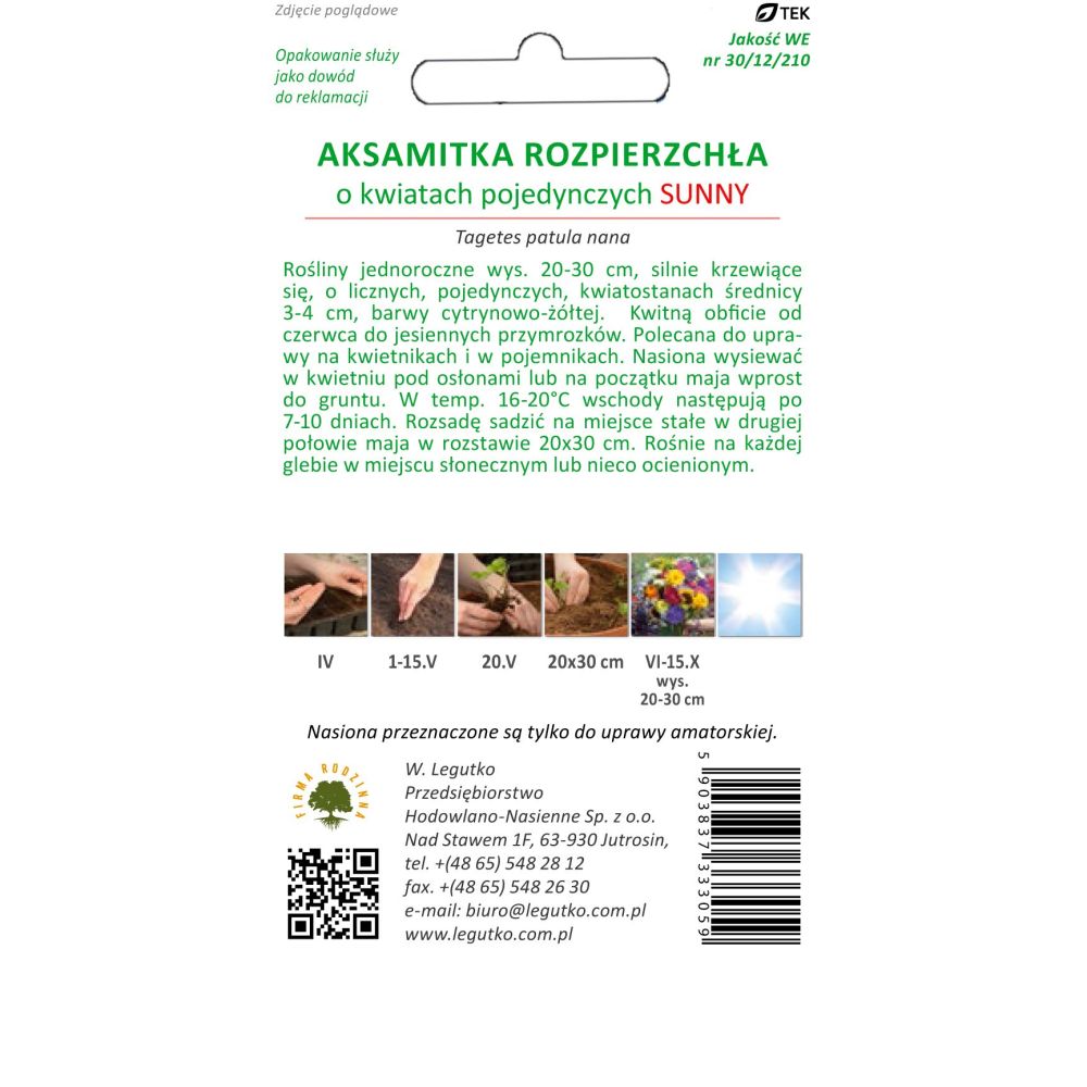 Aksamitka rozpierzchła - Tagetes patula nana - Sunny - żółty - 1.00g -