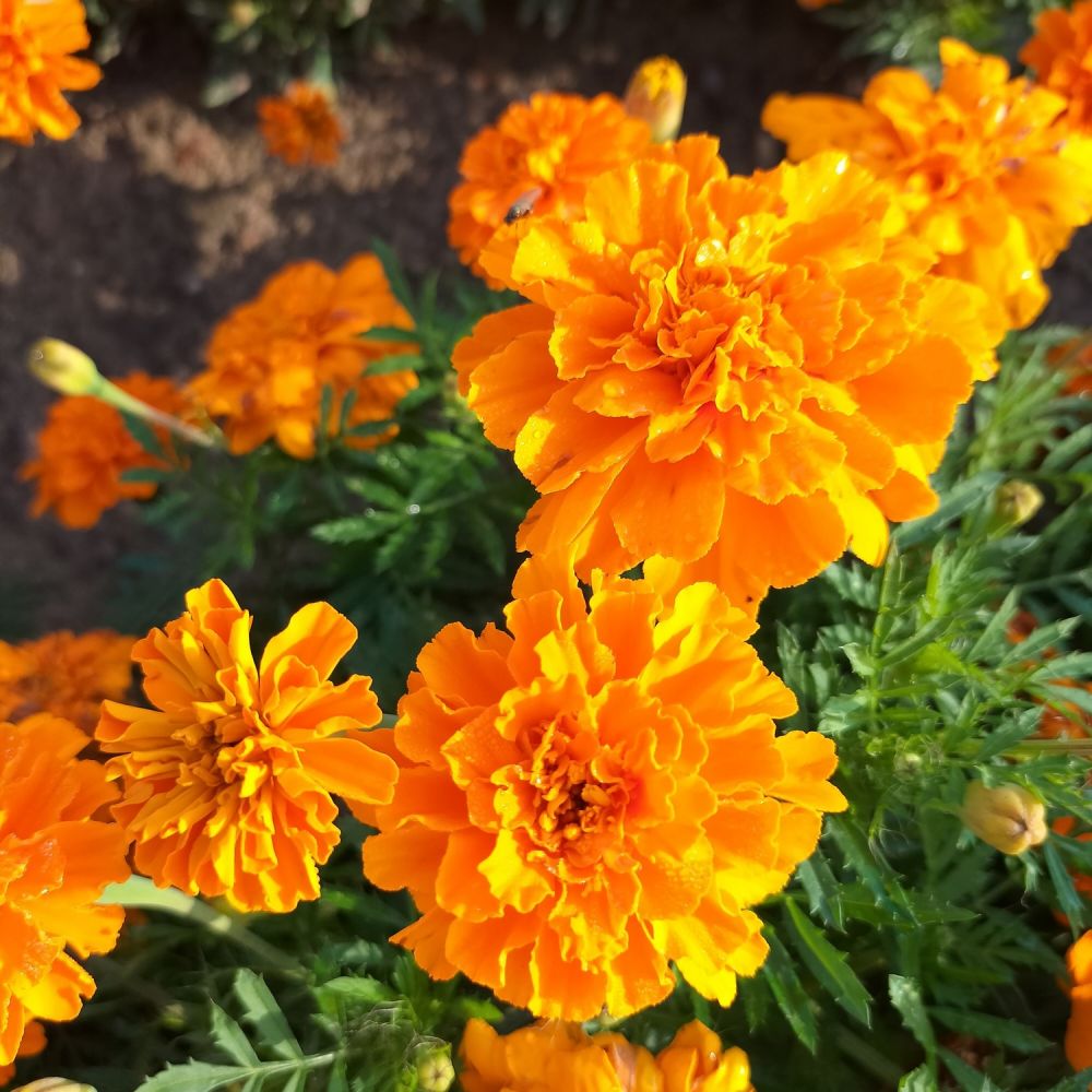 Aksamitka rozpierzchła 'Aura S Tangerine' to niezwykła odmiana wyróżniająca się zachwycającymi, neonowo-pomarańczowymi kwiatami. Rośliny osiągają wysokość 25-30 cm, tworząc zwarte, atrakcyjne kępy, które przez cały sezon obsypane są dużymi, jaskrawo kolorowymi kwiatami o średnicy około 6 cm. Ich intensywny odcień pomarańczowego tworzy efektowny kontrast w ogrodzie, przyciągając uwagę i dodając każdej rabacie lub donicy żywej energii.
